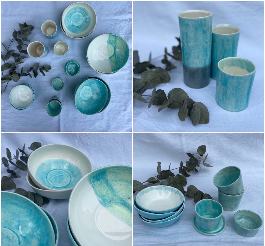 Ich fertige meine Keramiken in der Aufbautechnik an oder verwende feine Porzellanmasse zum Gießen. Alle Stücke werden je nach Anwendung und Glasur bei 1100° oder 1200° gebrannt.